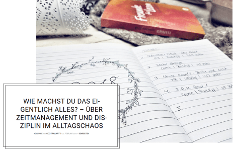 Liebe Leser. Ich werde relativ häufig gefragt, wie ich Alltag, Arbeit, Blog, Haushalt und Freizeit unter einen Hut bekomme, also regelmäßig blogge, fotografiere, einige Bücher im Monat lese, im Schichtdienst arbeite, Freunde treffe und den Haushalt schmeiße – am besten ganz weit weg. Heute möchte ich euch weiterlesen..